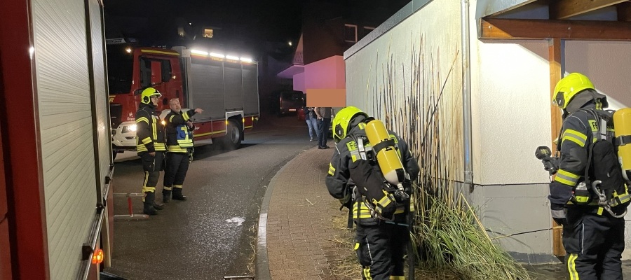 Schnell konnte mit der Schnellangriffseinrichtung des HLF der Brand gelöscht werden. Da sich auch eine Garage in unmittelbarer Nähe befand, wurde auch diese mit Wasser gekühlt und sowohl dort als auch auf dem Dach mit der Wärmebildkamera auf mögliche Glutnester und warme Stellen untersucht. Es konnte jedoch nichts festgestellt werden.