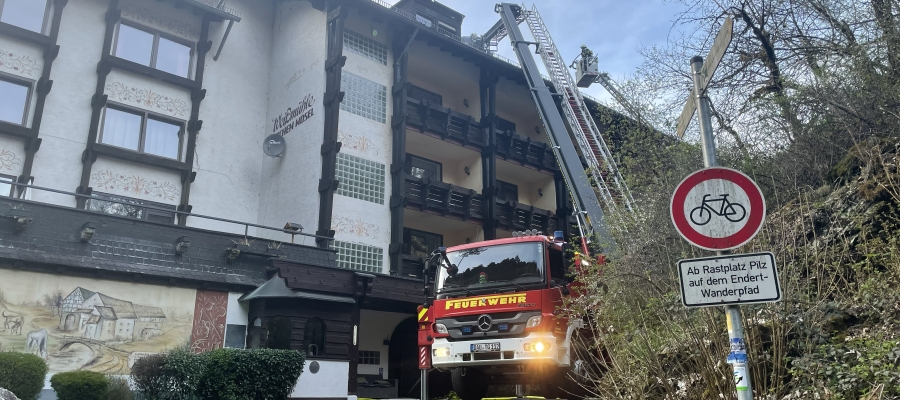 Am 09.04.2026 wurde der TGM der Feuerwehr Daun um 18.25 Uhr zur Unterstützung zu einem Hotelbrand nach Cochem alarmiert. Bereits am Nachmittag war es dort zum Brand im Dachgeschoss in einem Hotel gekommen. Das Feuer hatten die Einsatzkräfte aus der VG Cochem bereits unter Kontrolle.